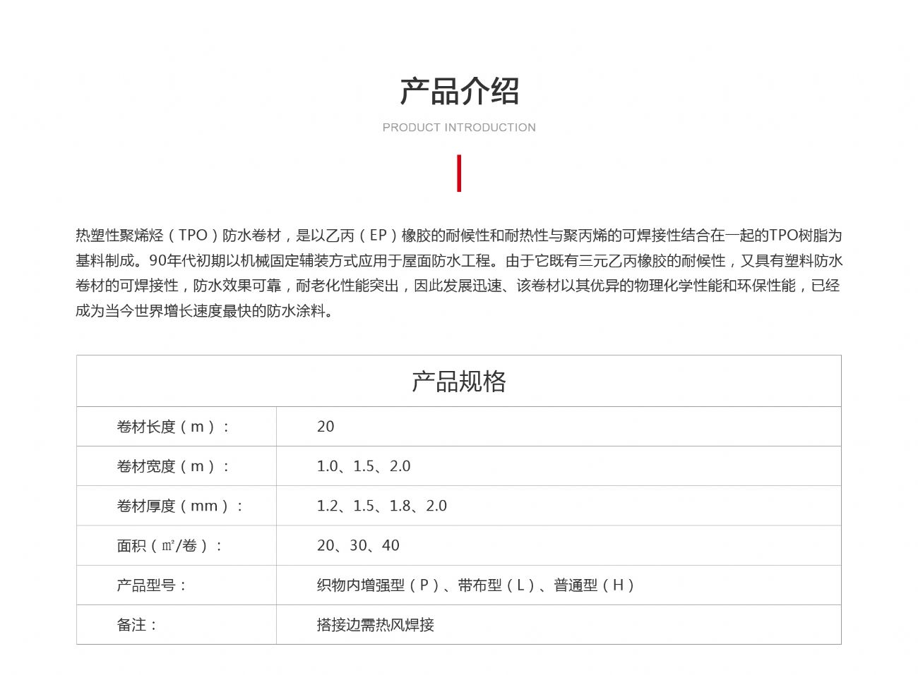 热塑性聚烯烃(TPO)防水卷材(带布) 2019-8-16 本文被阅读 8956 次